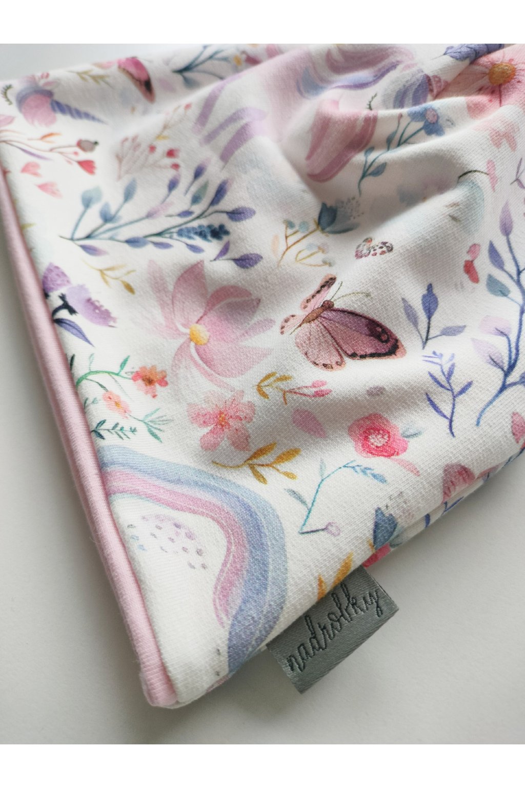 Dětská čepička a nákrčník z designové teplákoviny podšité bavlněným úpletem. Vybrat si můžete buď čepici, nákrčník nebo zakoupit oba kousky v setu.